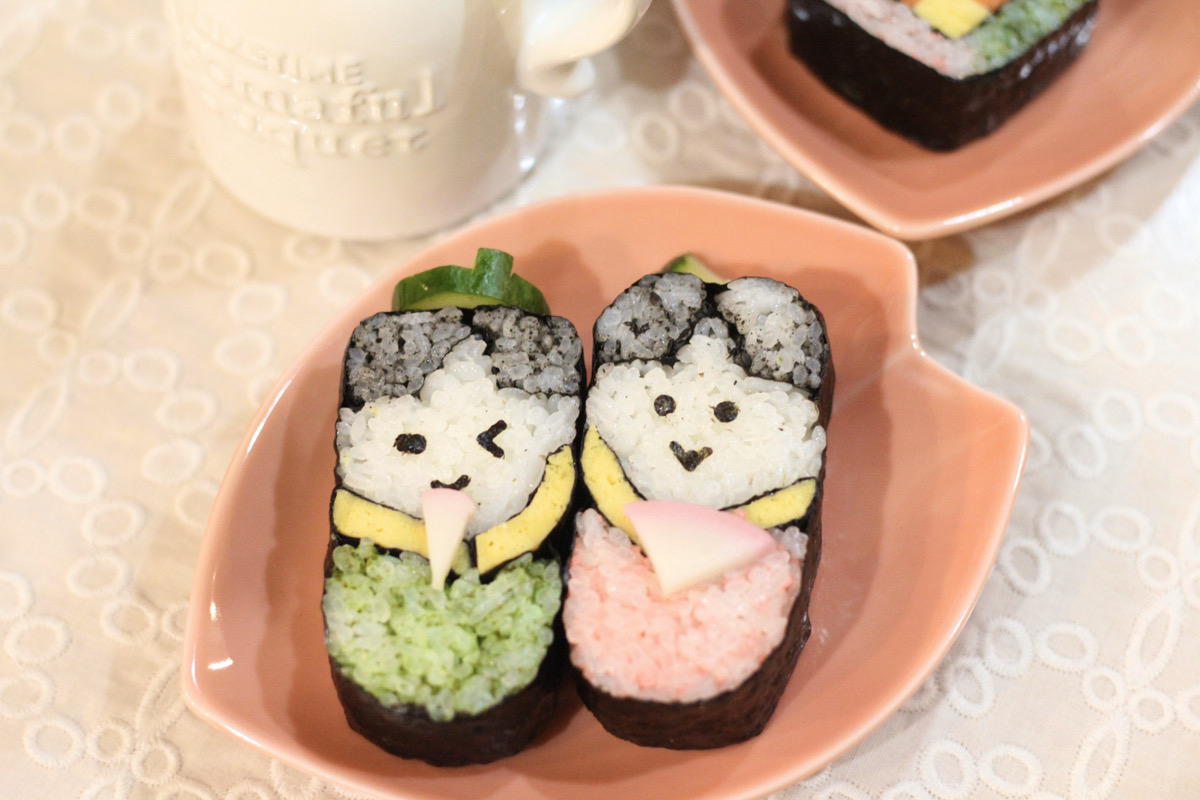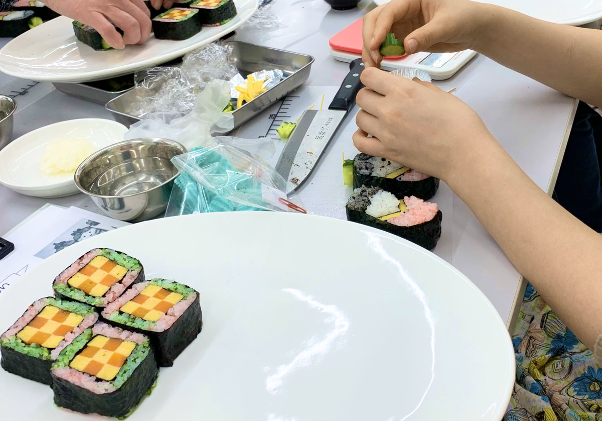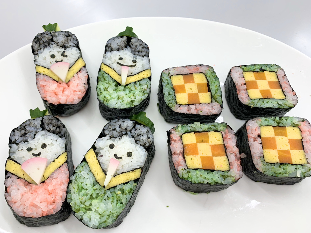 飾り巻き寿司は、ご飯を、部位ごとに50g単位で色分けするのですが、パン生地とはまた違ってすっごく面白かったです!