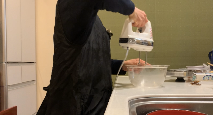 シフォンケーキ作りは、短時間の作業ではありますが、短期集中と言いますか、時間何に集中して気合を必要とするため、気が抜けないんです。