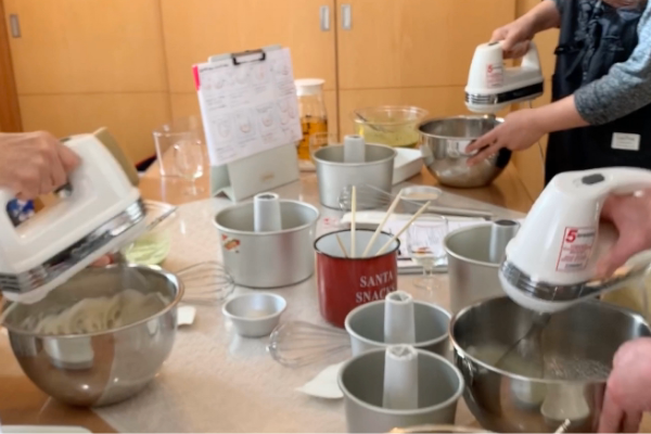 生徒さんは、粉雪のリズムに慣れていらっしゃるので、べたつく生地の扱いも、ちょっと常識外れな成形もなんのその♪