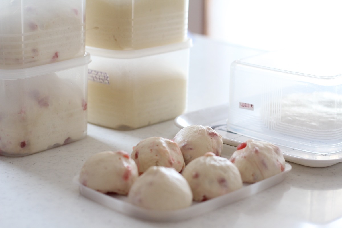 来ていただくころに、ちょうど良い発酵状態であるように途中少しだけ冷蔵庫で温度調節したりと、何かと頭は使いますが、ちゃんとできたときは本当に美味しい生地が出来上がります♪