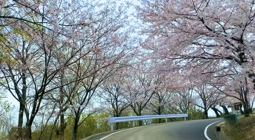 すぐ近所の桜道を走り、車内で花見をしながら弁当を♪