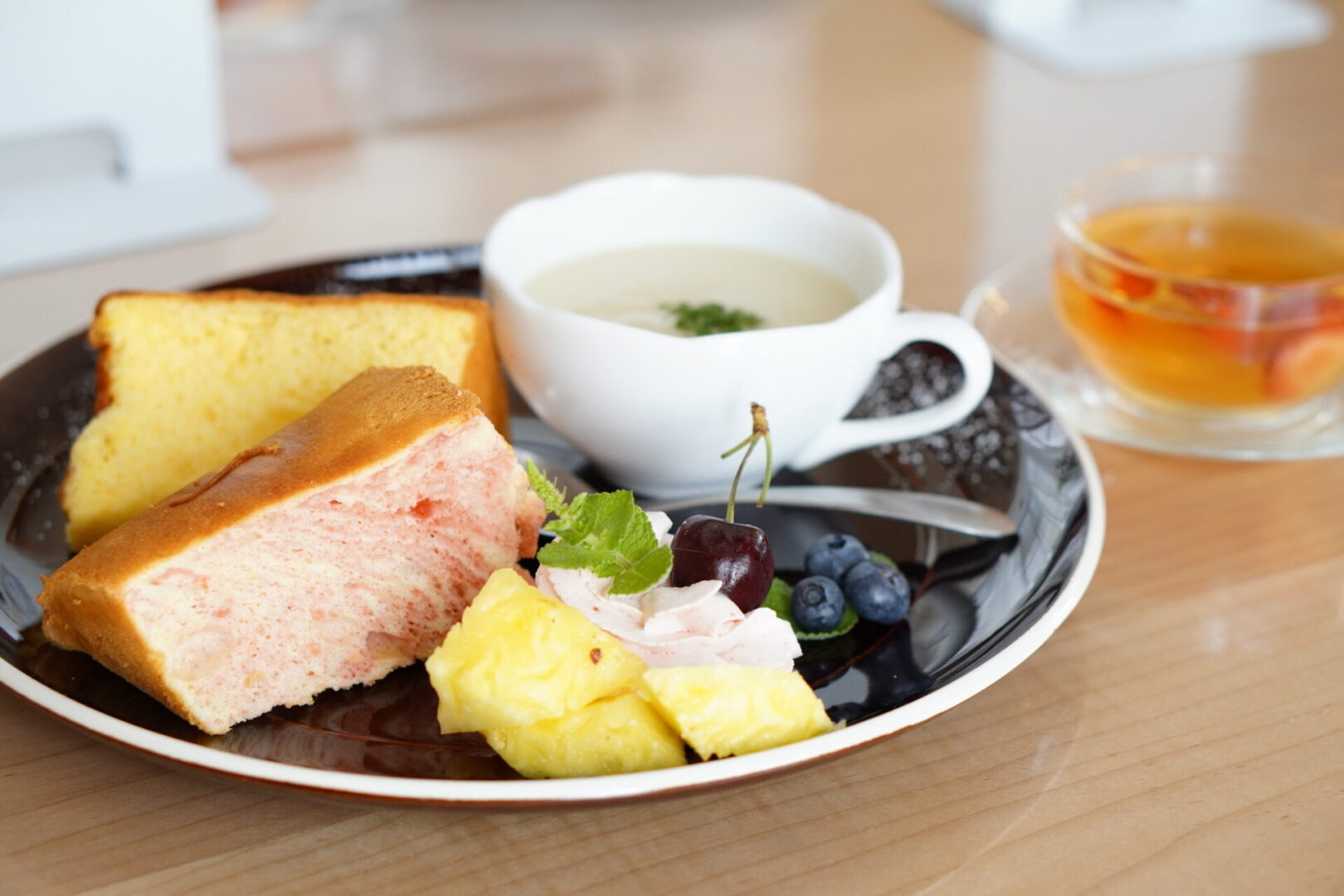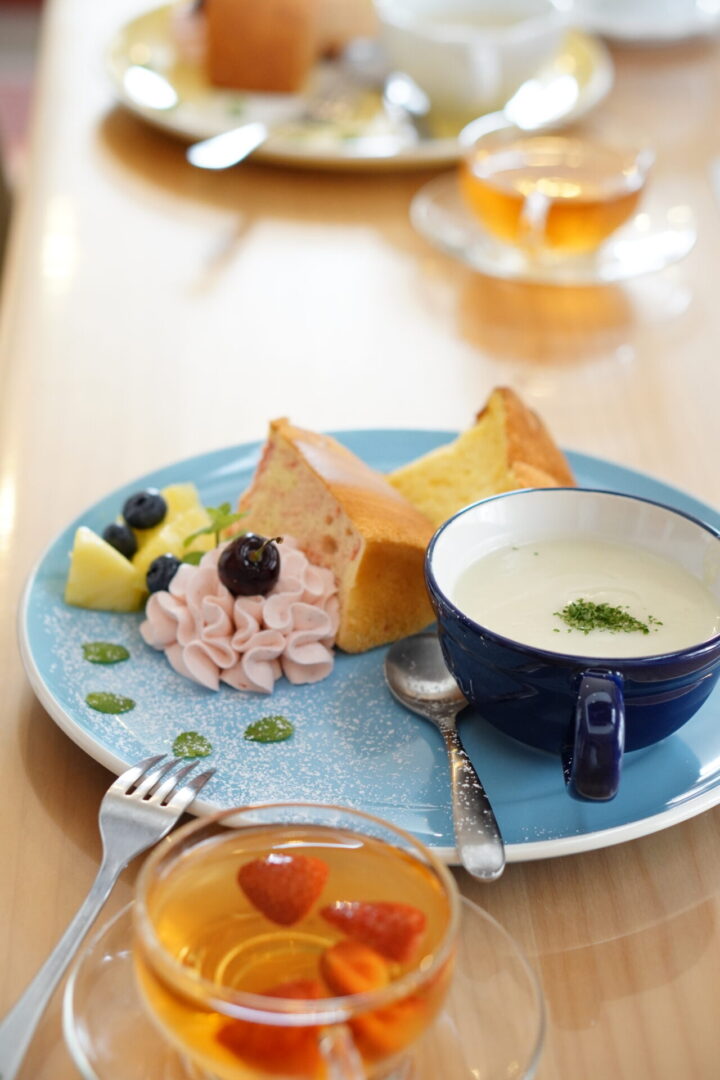 シフォンケーキもフルーティなので、新玉ねぎの自然の甘さが引き立つ冷静スープも良く合います!