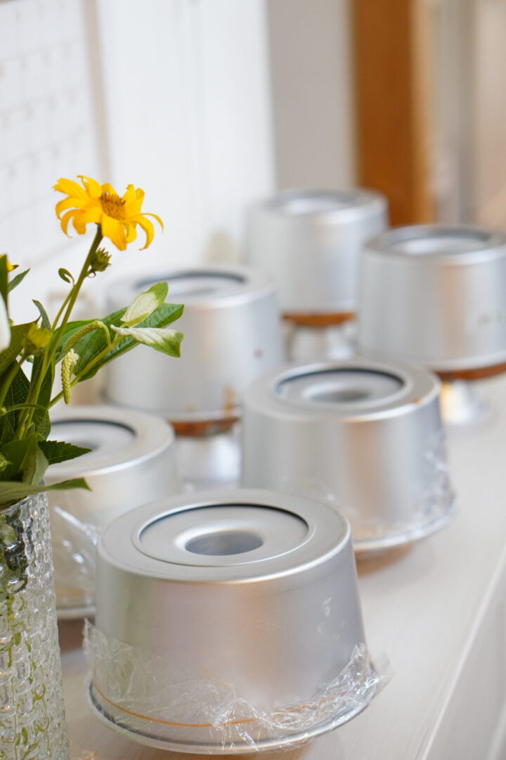優雅なティータイムの後ろでは、シフォンケーキがずらり!