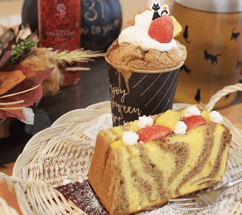 ハロウィンを意識するなら、こんな遊び心のあるシフォンケーキもいいですね♫