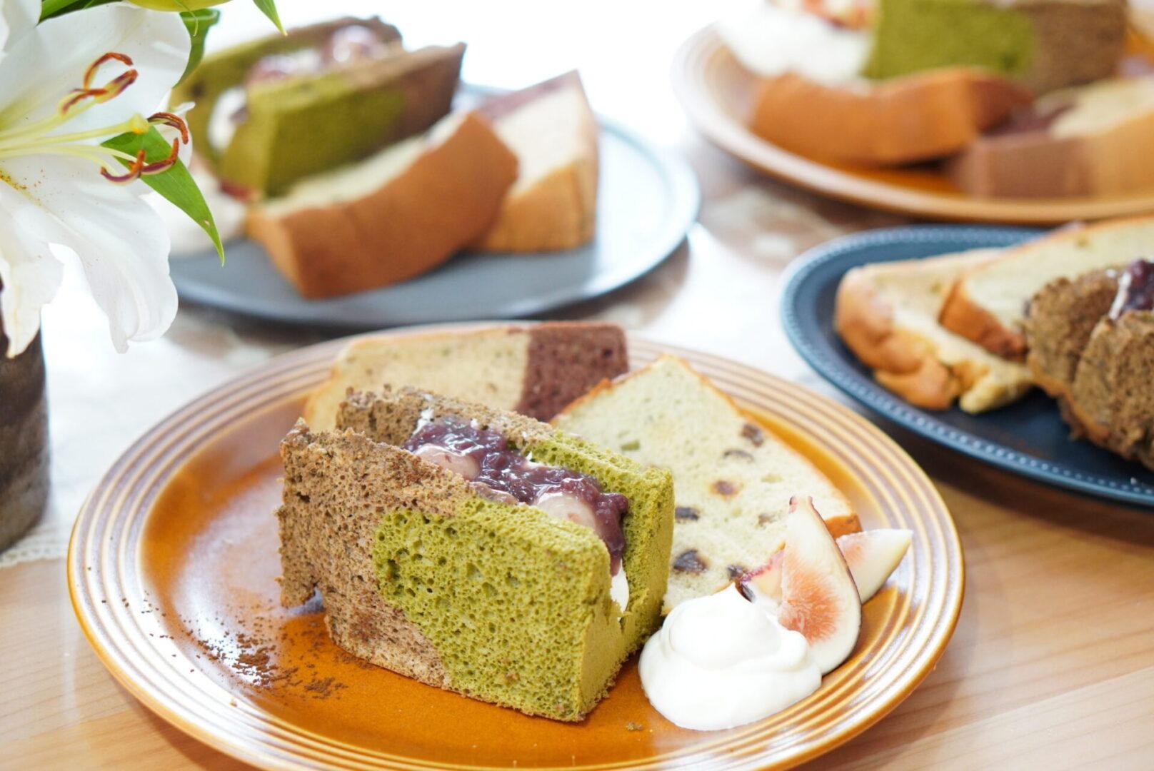 本日は、試食タイムでは、今まだ試作途中の抹茶ほうじ茶シフォンが登場しました。