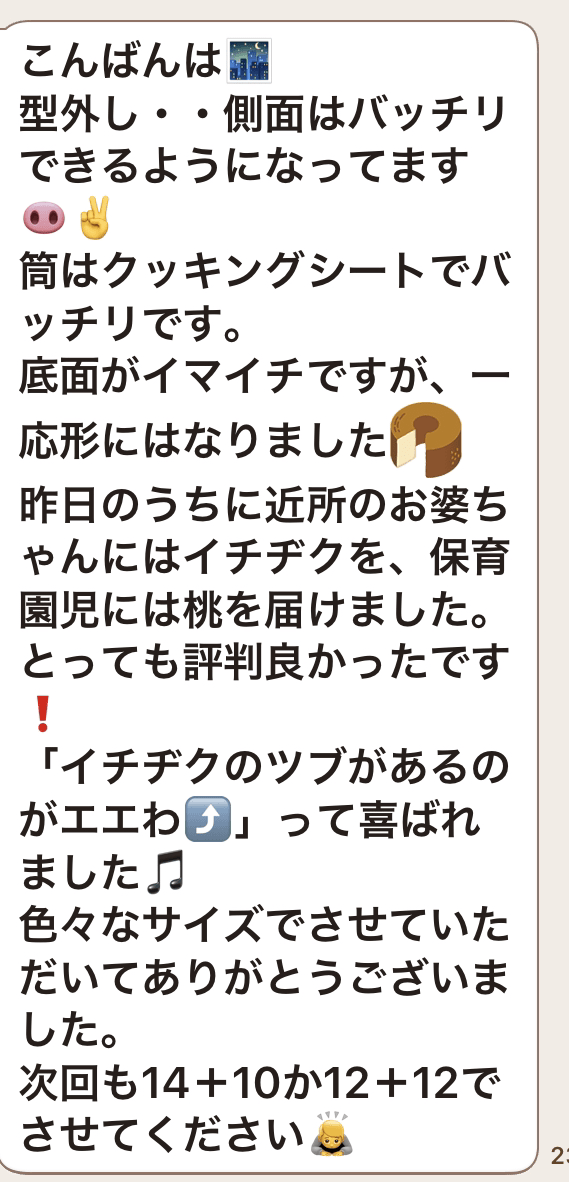 ご自自宅で無事型外しをされ、お配りできたようで、こんな幸せなメールをいただきました!