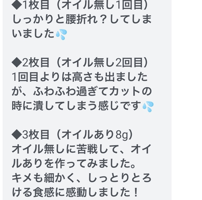 オイル有り、無しの焼き比べを早速してくださっていたり、一つ一つのご感想を細やかに記載して送って来てくださったりしていました。