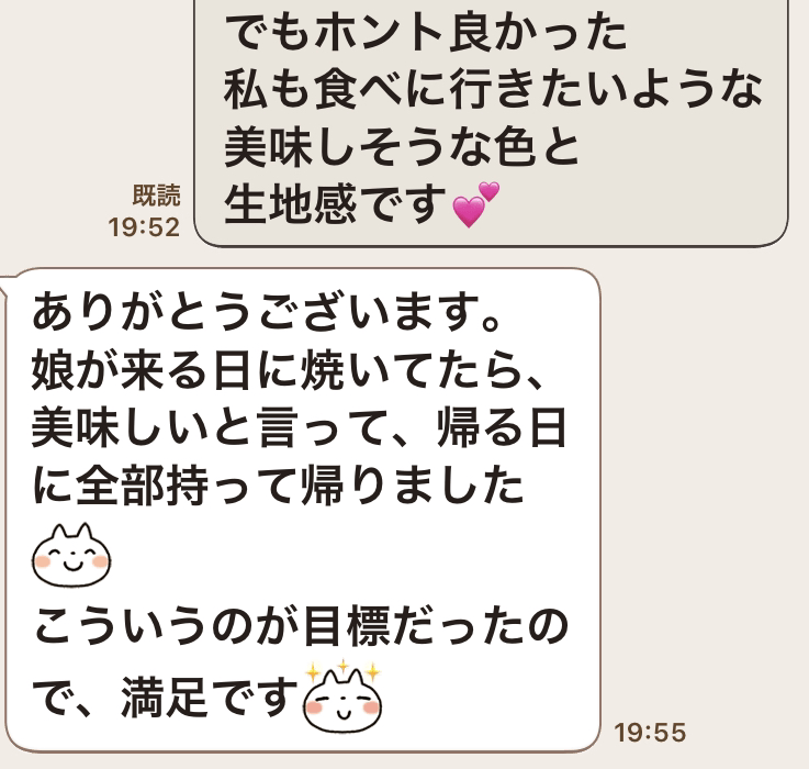 「あの配合と、分かりやすい動画だけで、何とか自分のものにすることが出来そうです。今では他のフレーバーでもアレンジしていて、周りの知り合いからも、今では小麦粉よりも米粉の方が高評価なんです!」