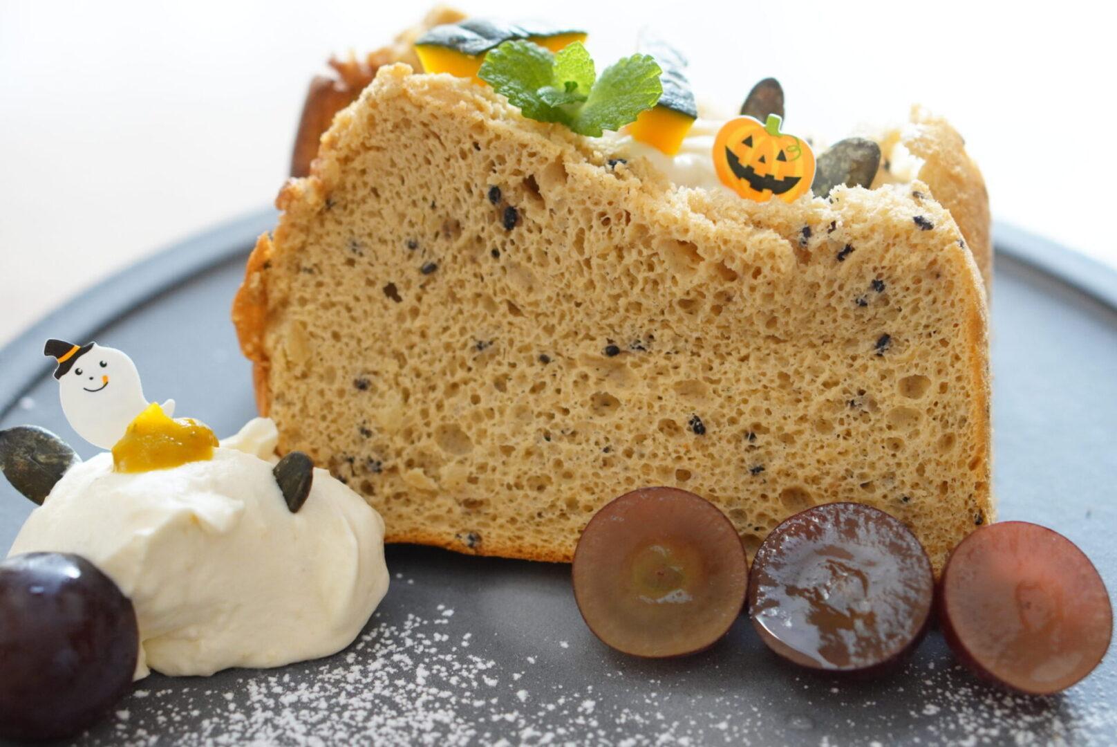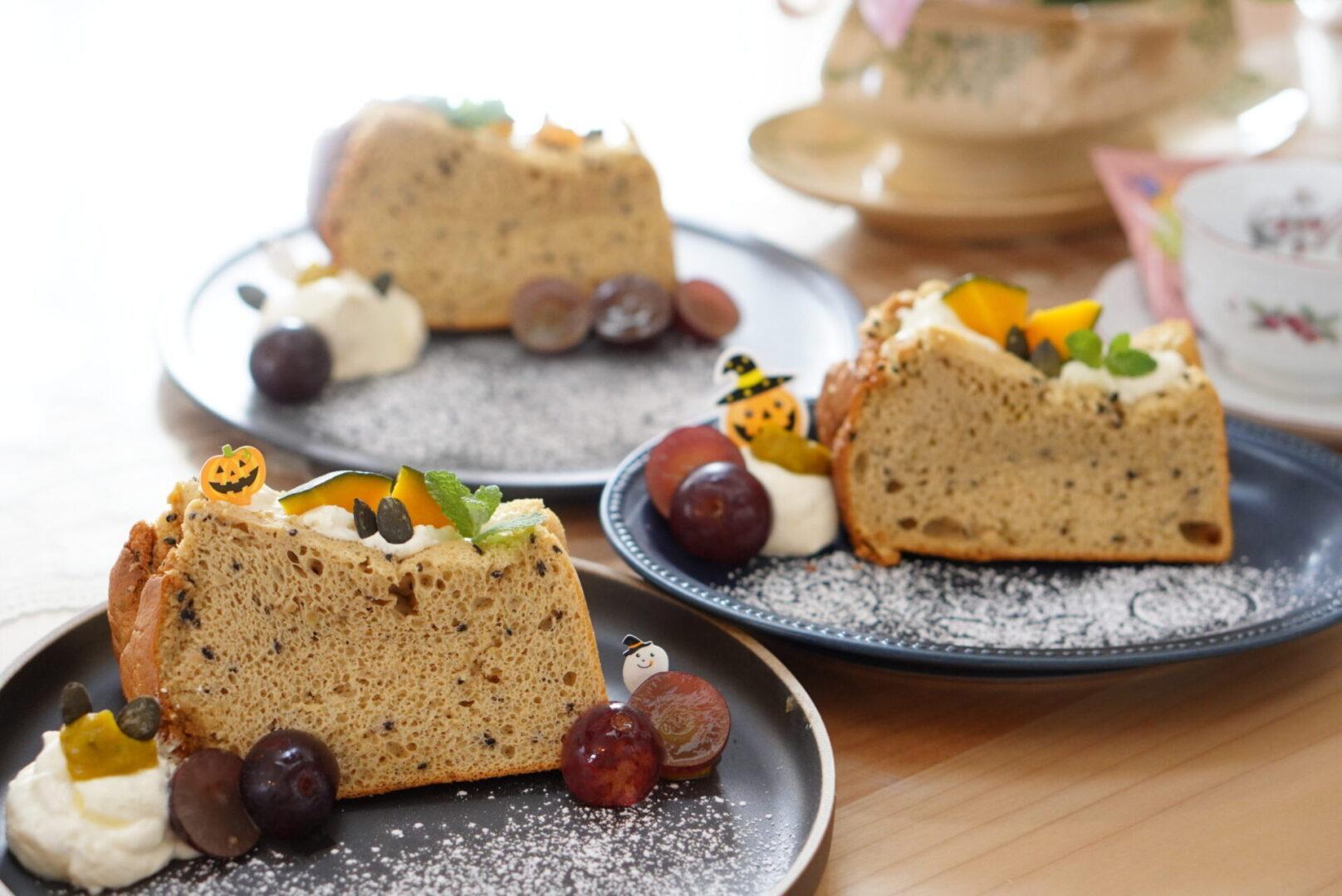 本日の試食タイムでは、焼き芋シフォンとさつまいもクリームで、ちょこっとハロウィンを意識した飾りつけに♫