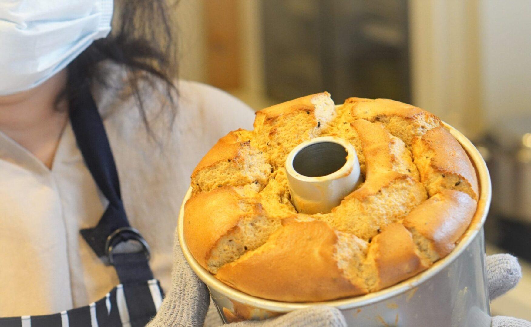 というシフォンケーキにもかかわらず、いい形で膨らませることが出来た生徒さん、凄い!!