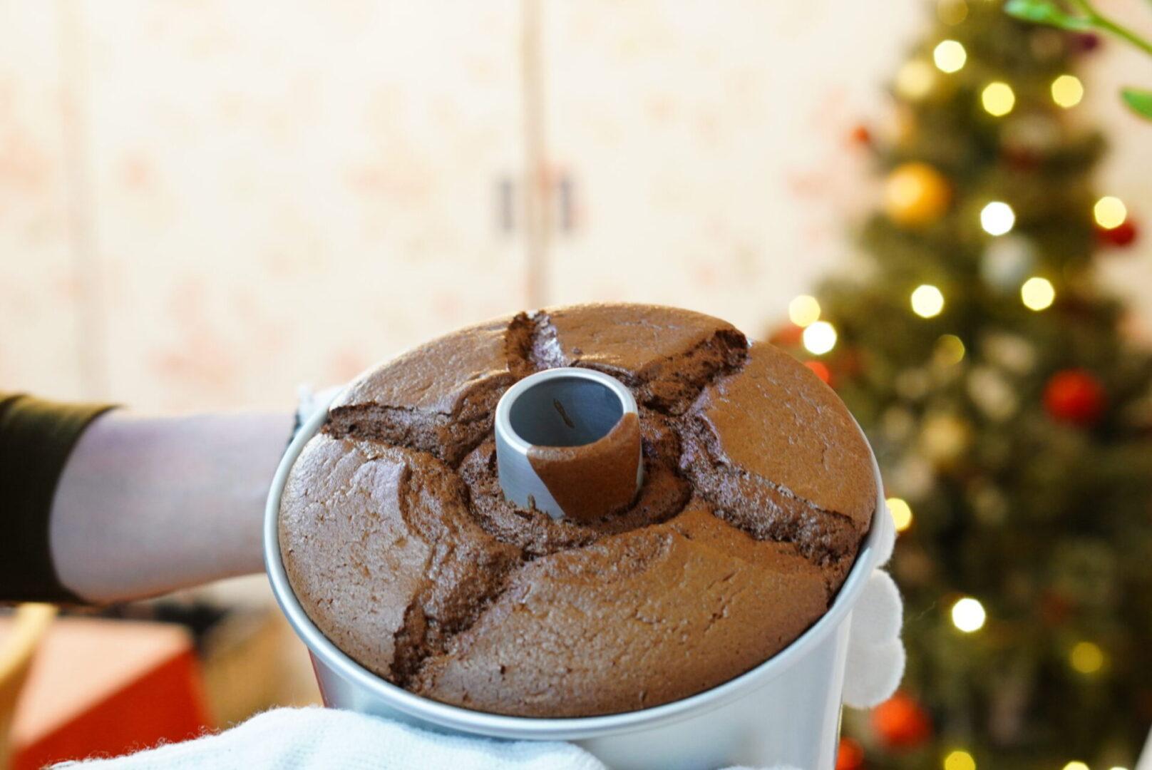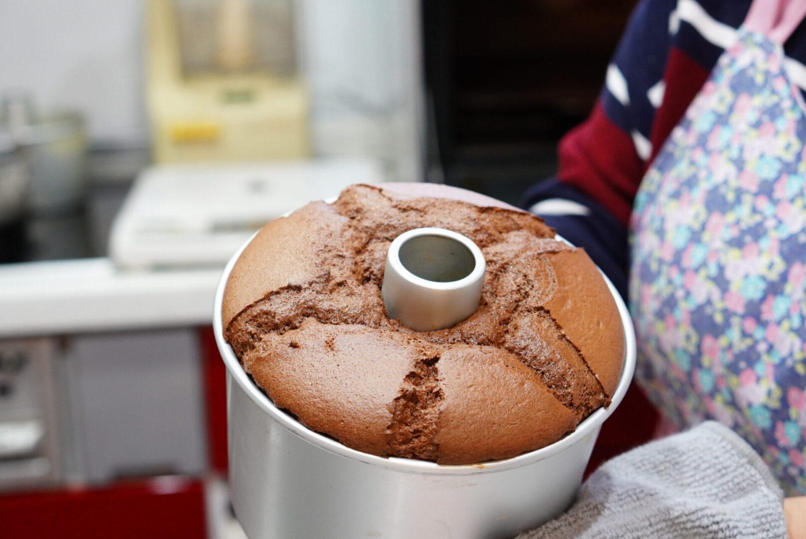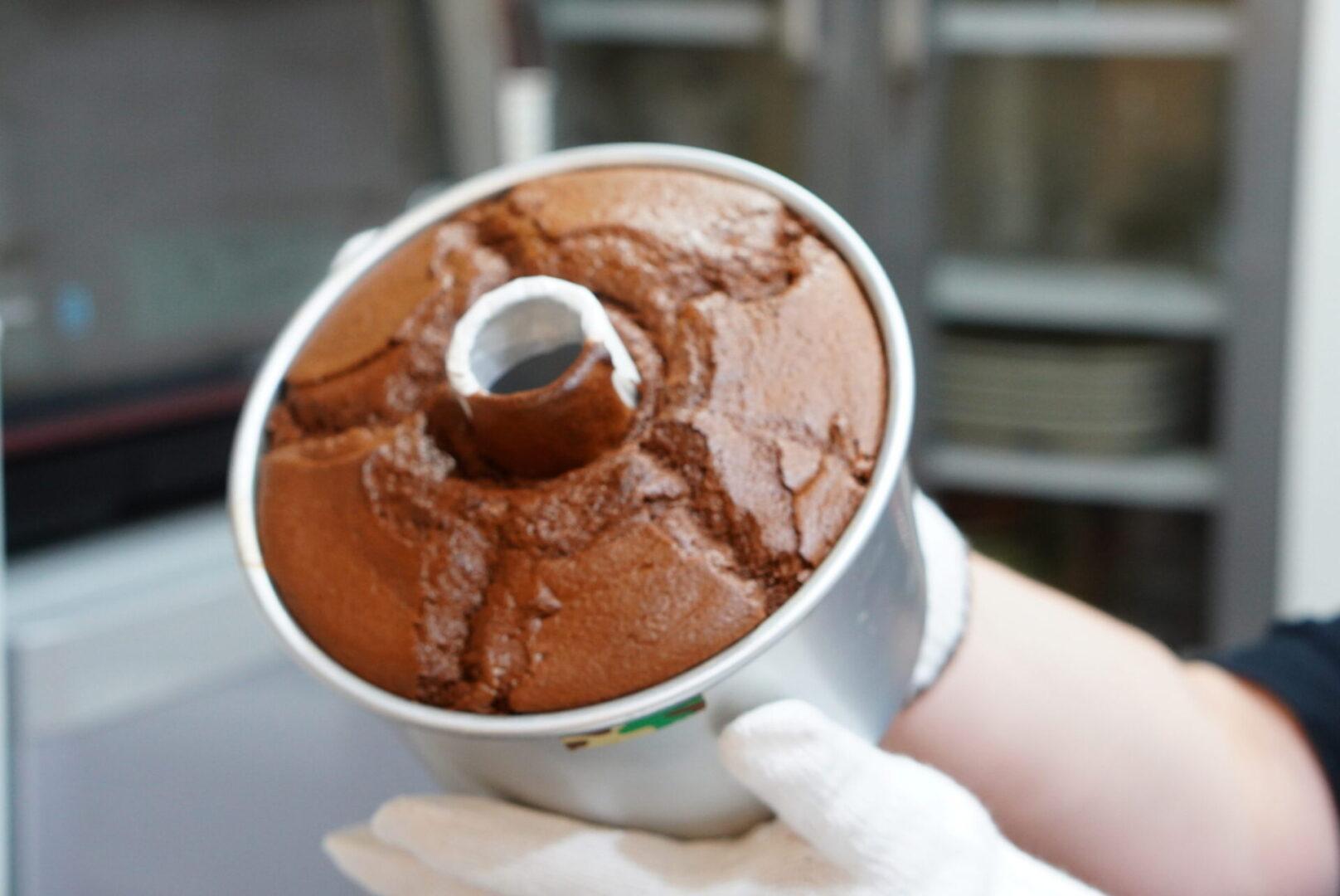 見た目、何の変哲もないチョコレートシフォンケーキですが、濃厚なチョコレートを綺麗に膨らませることは、並大抵ではないのです。