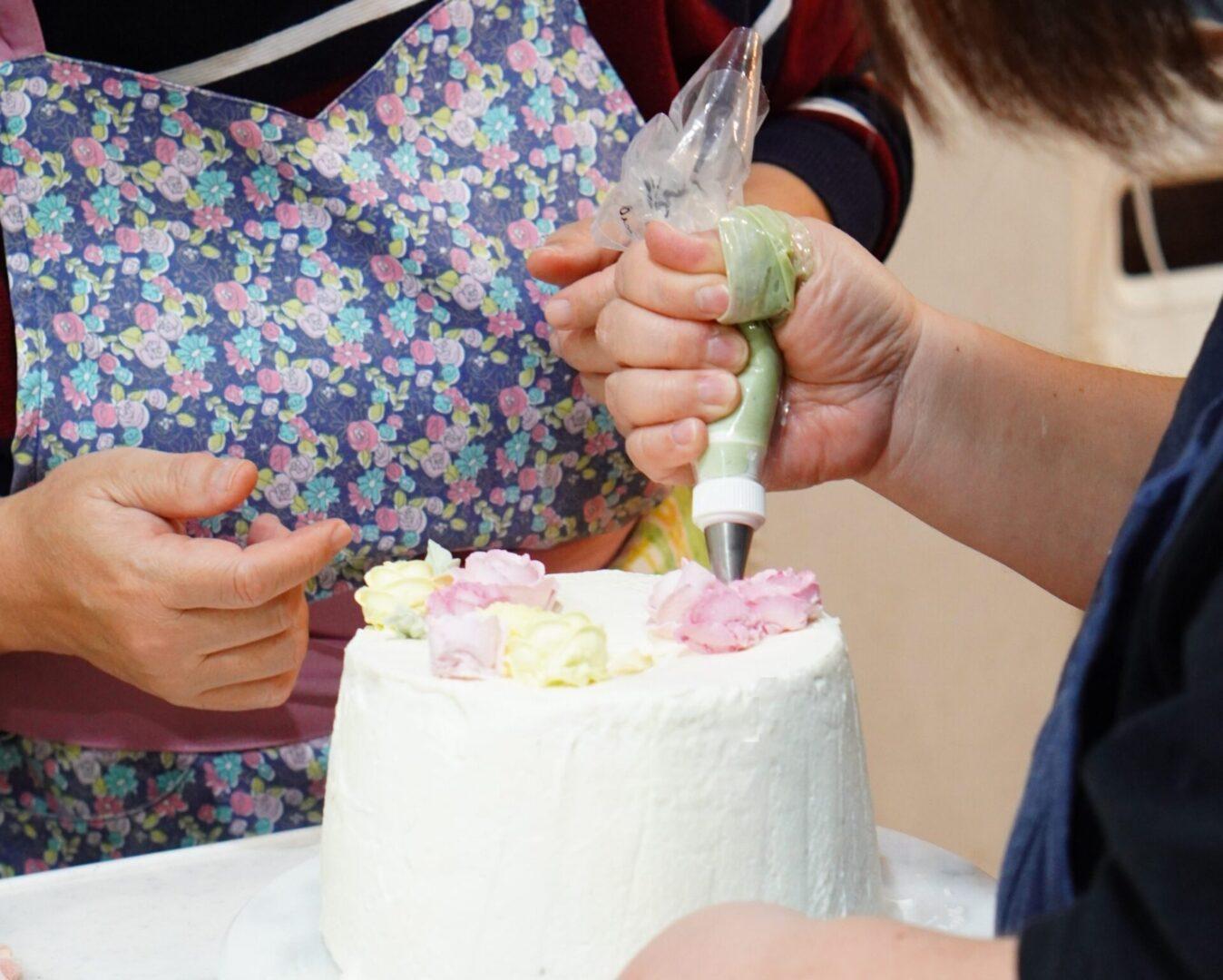 そうして、この日の参加者さんの中に、生クリームで作るフラワーケーキを作る方がいらっしゃるので、そのナッぺに飾れるフラワークリームを作ってきていただきました。