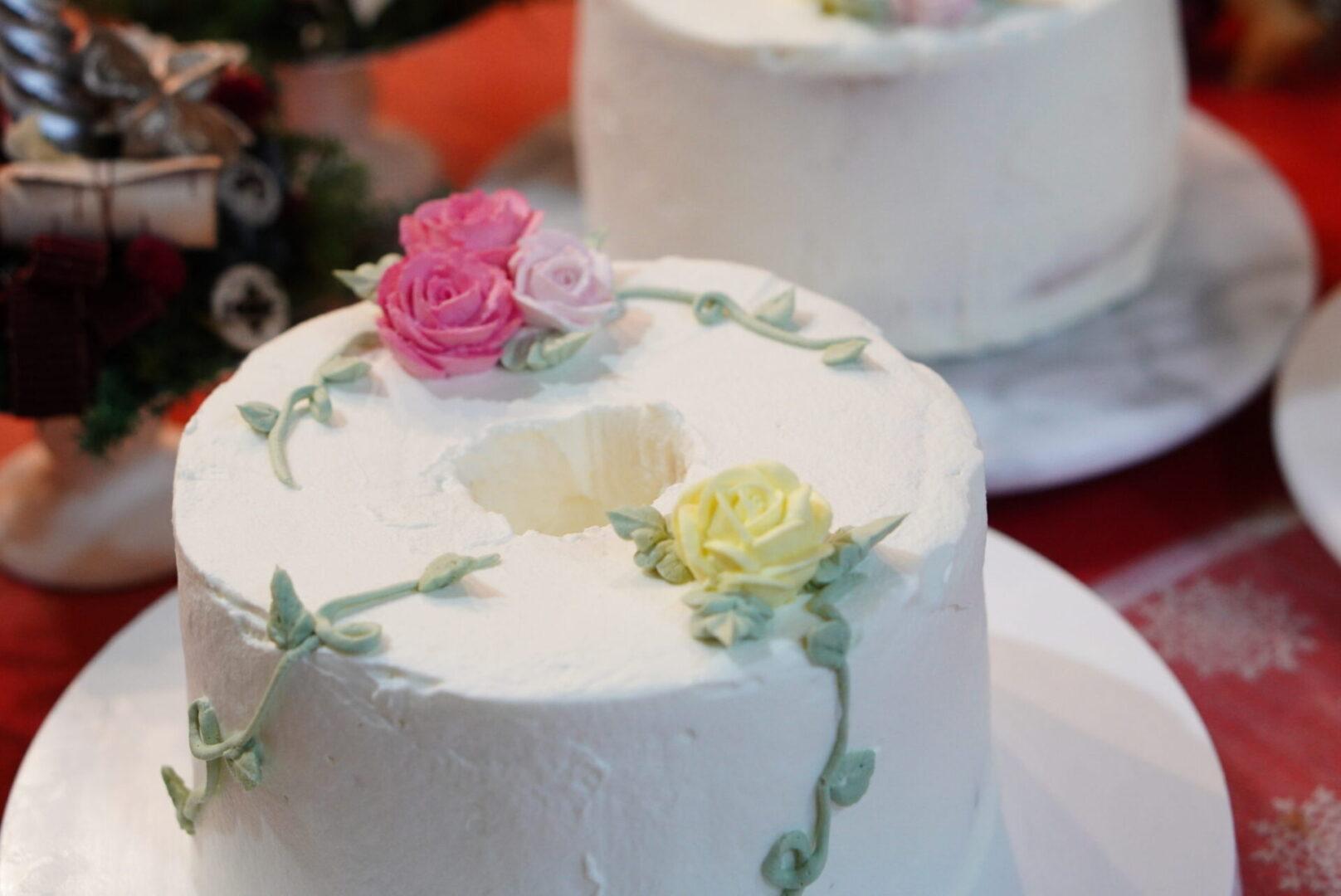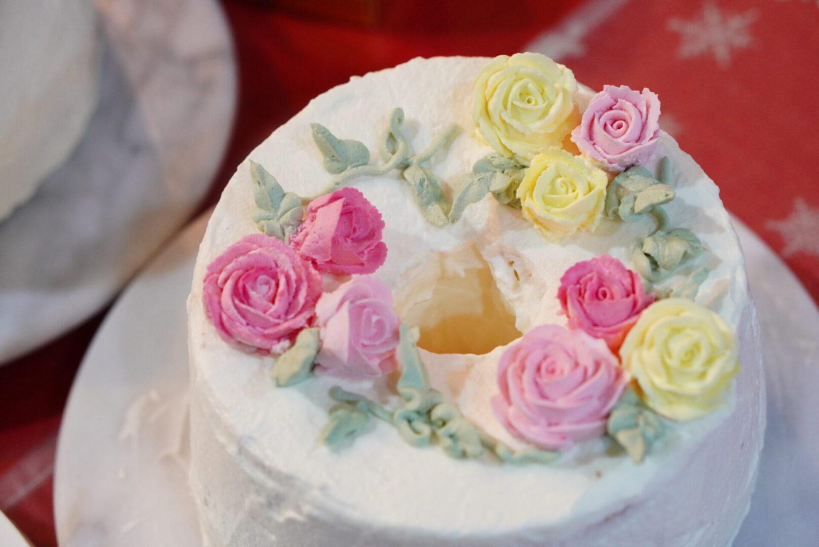 焼けたシフォンケーキに、飾りつけするという内容が良いと思いませんか?