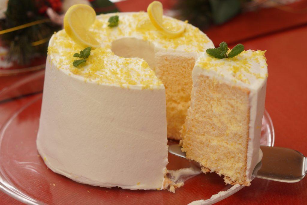 上部に季節の素材を小さく散りばめれば、立派な季節のシフォンケーキになりますよ。