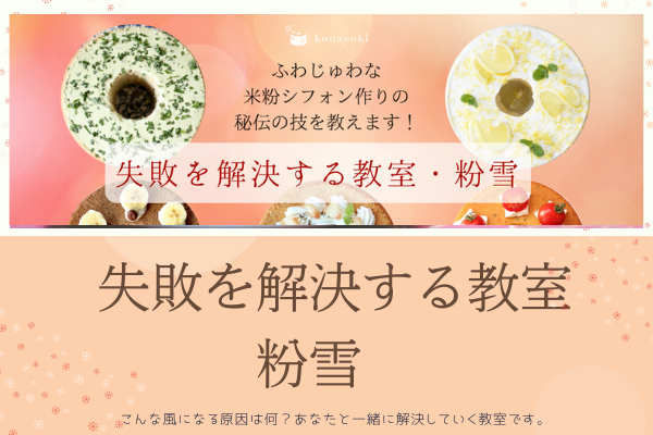 過去数年、小麦粉シフォンケーキについて研究を繰り返してきた粉雪ですが、2019年9月から、米粉シフォンケーキを専門とする教室に転換しました。