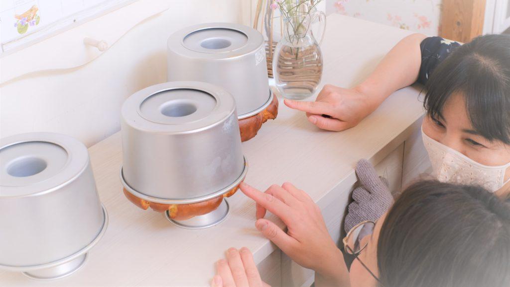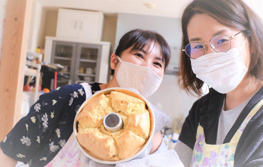 仕上がりが気になって二人で焼き上がりのシフォンケーキを下から覗きながら会話している姿が可愛らしくてね~(笑)