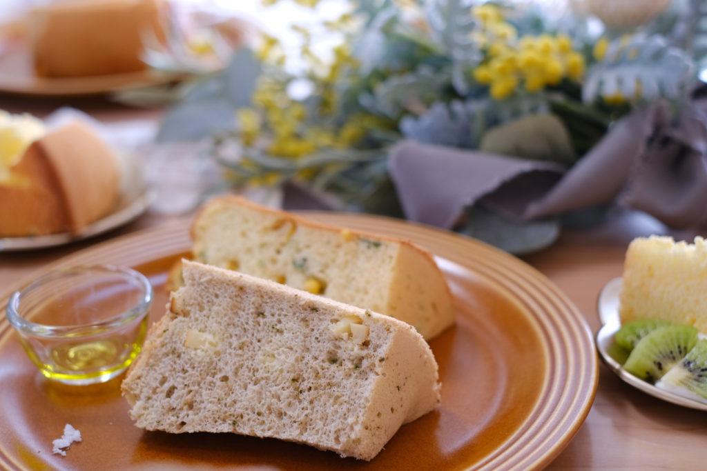 オリーブオイルに付けて頂けば、シフォンケーキ版フォカッチャ的なお味に。