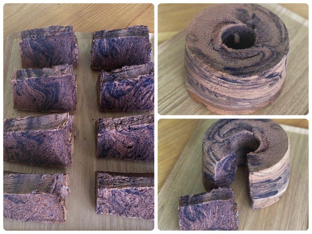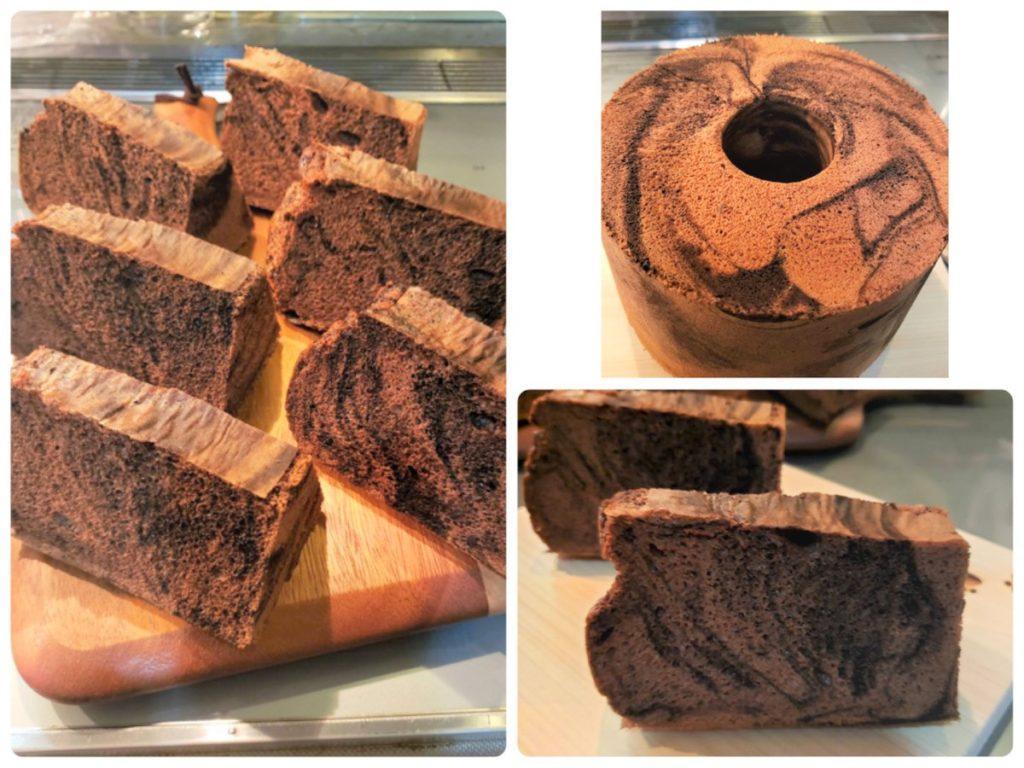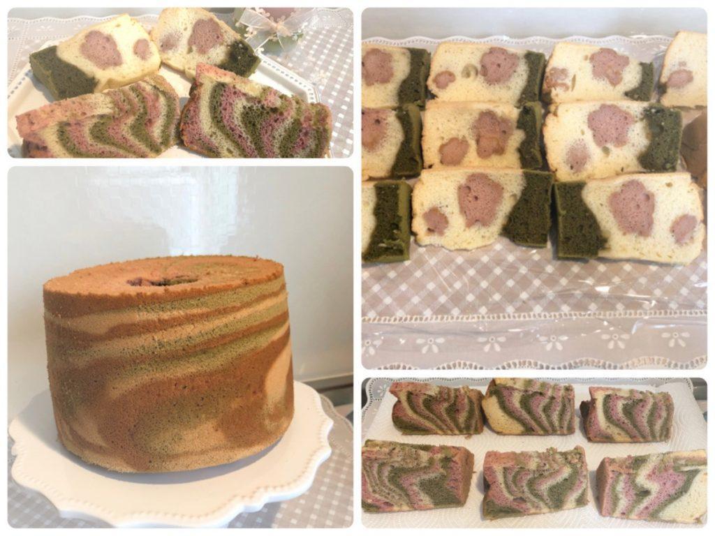 レッスンのシフォンケーキを型外ししたよ、のご紹介。粉雪シフォンの柄入り