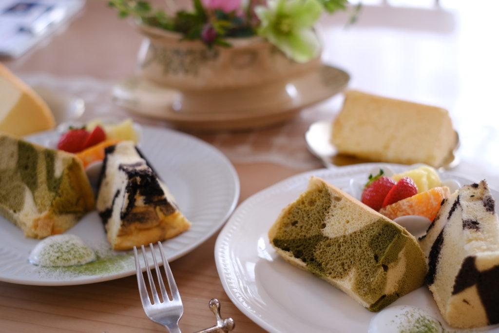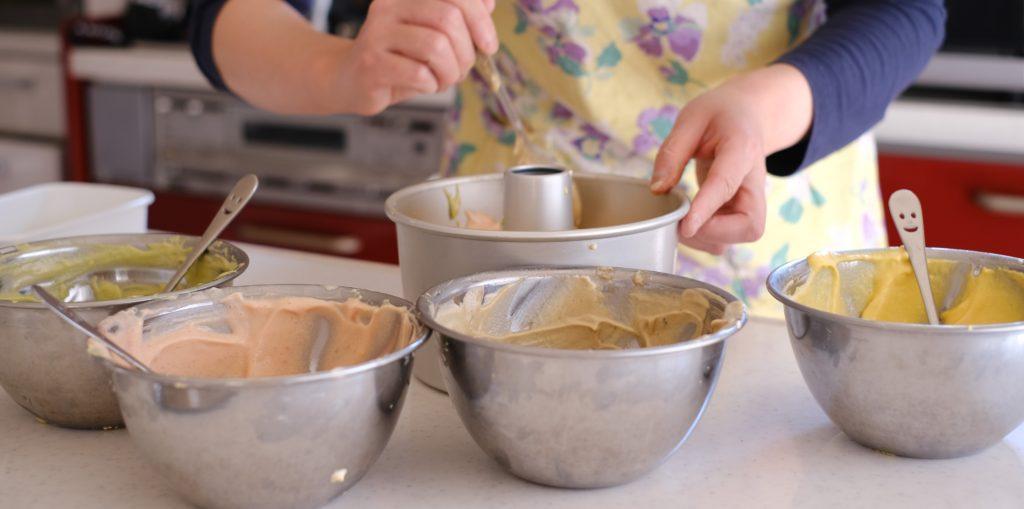 ※こちらの画像は、1回前のレッスンで、ご自分で焼いたシフォンケーキも味見させてくださったときの3種類です!