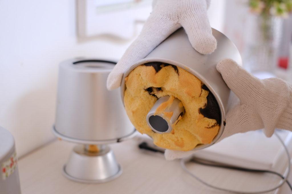 牛シフォンは、カットしたら、ただの模様になるので、生徒さんのご希望で12㎝で焼いてもらいましたが、それなりにドキドキします。