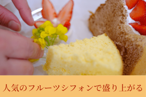 いちごの説明では、作り方としては安心ですが、選ぶ食材で、シフォンケーキの仕上がりも変わるってことも学べるレッスンでした。