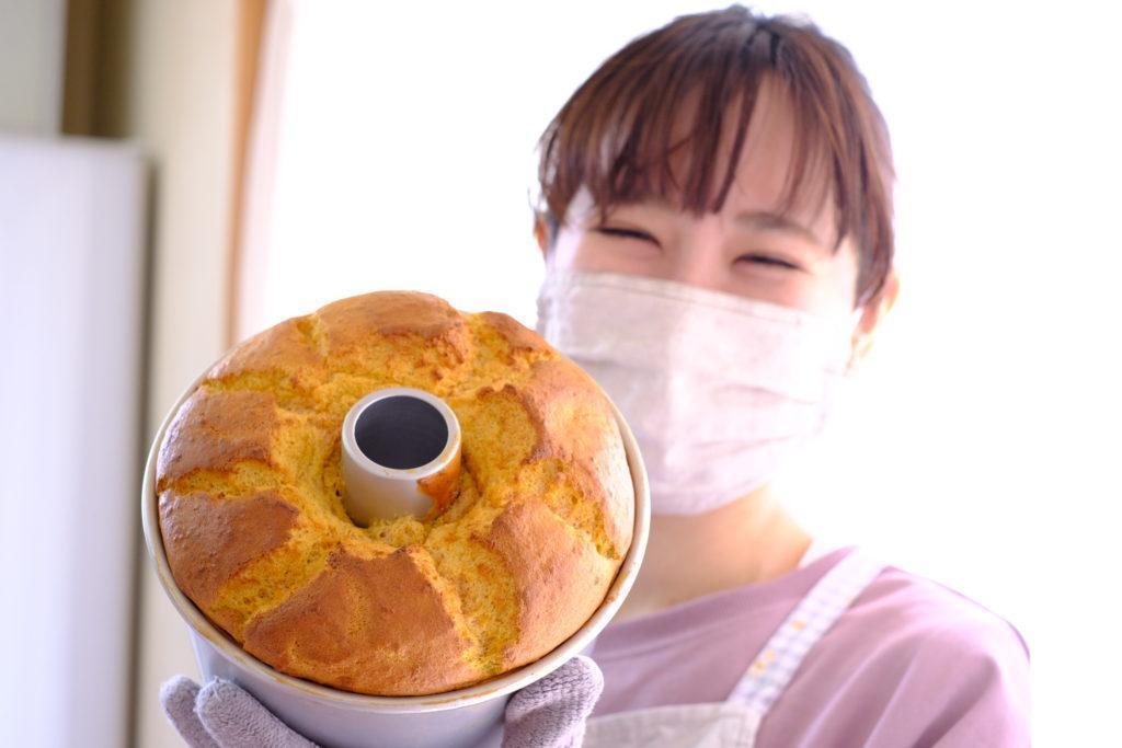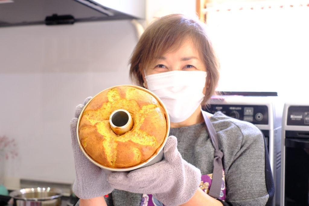 以前、小麦粉シフォン教室をしていた時には、焼き上がりの様子ではなく、皆さんが型外しをした後の画像を残していました。