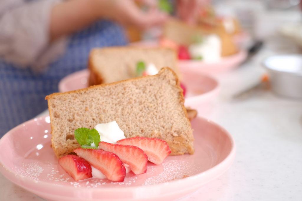 粉雪シフォンの触感が最大限なのが、このフレッシュいちごの米粉シフォンケーキです