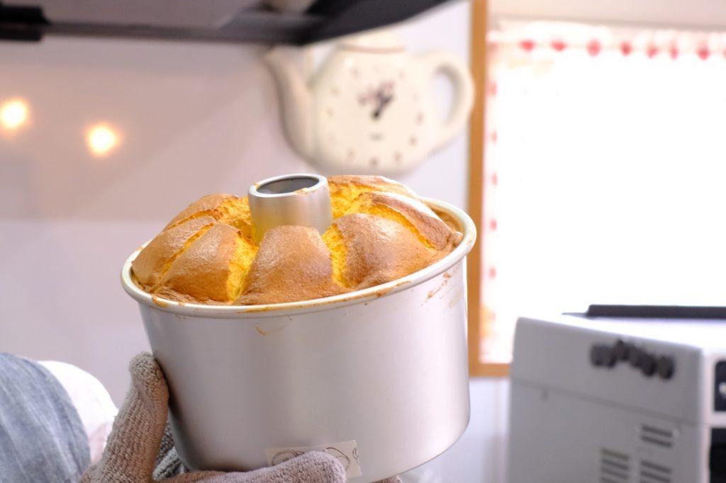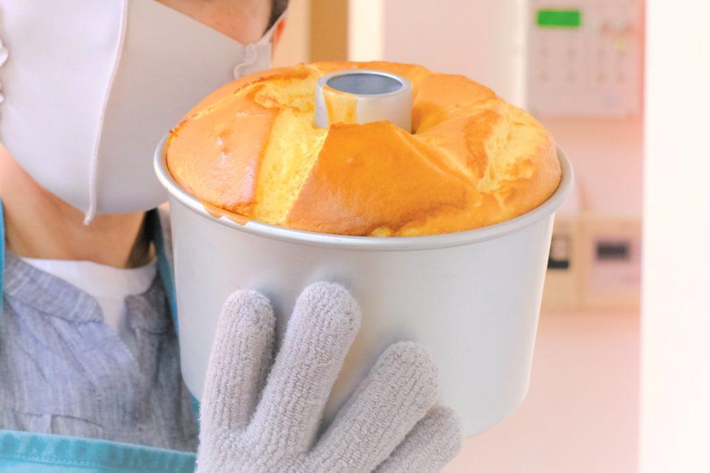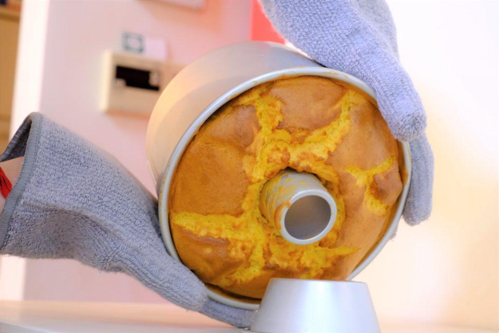 「これが、粉雪シフォンのクリームチーズノンオイル米粉シフォン」