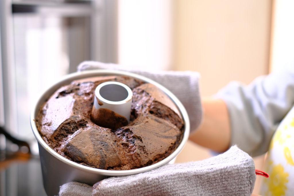 ◎濃厚ココアとブラックマーブルの米粉シフォンケーキです。