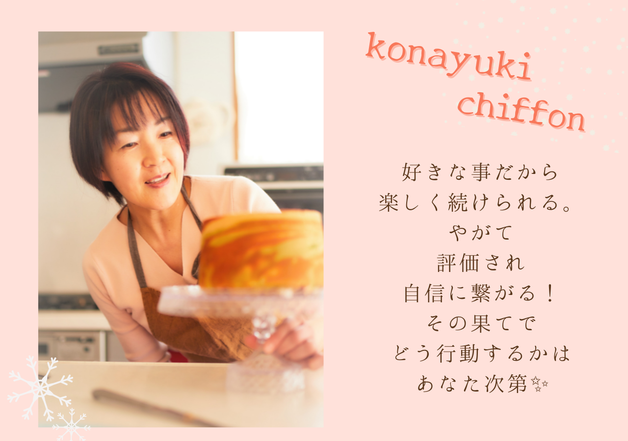 米粉シフォンケーキ専門教室konayukiの、粉雪シフォンマイスター直子です。