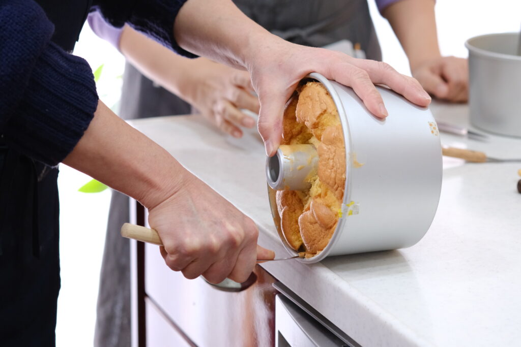 はい、要はそんな感じで考えて頂けると、型外しをした後のシフォンケーキを取りだすときだって同じなのです。