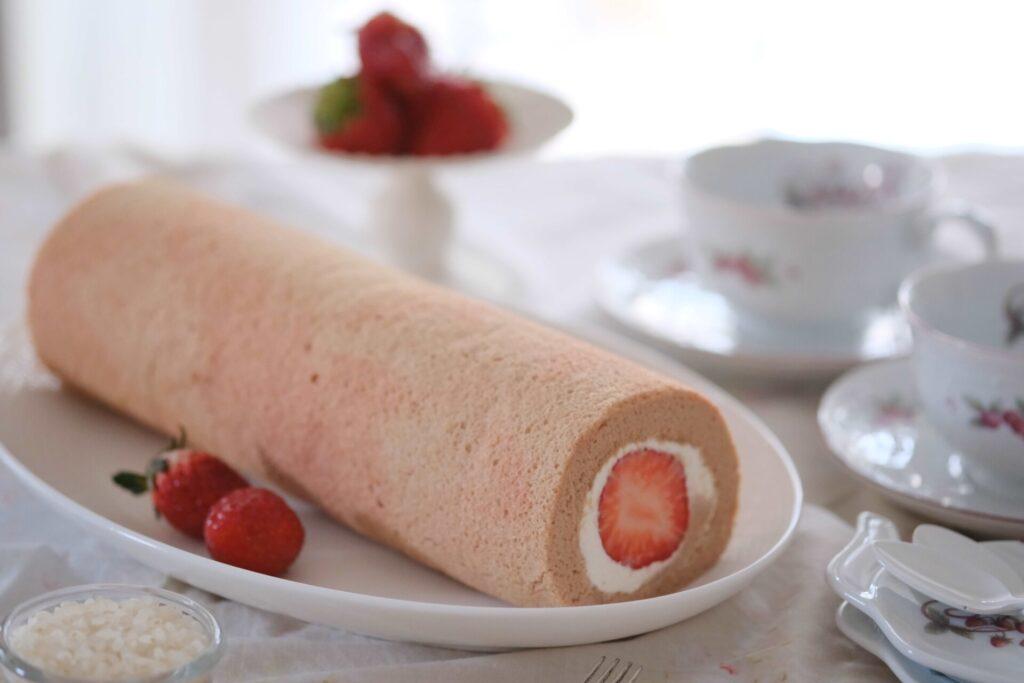 お米で作るイチゴのシフォンロールを、ショート動画で紹介してみました!