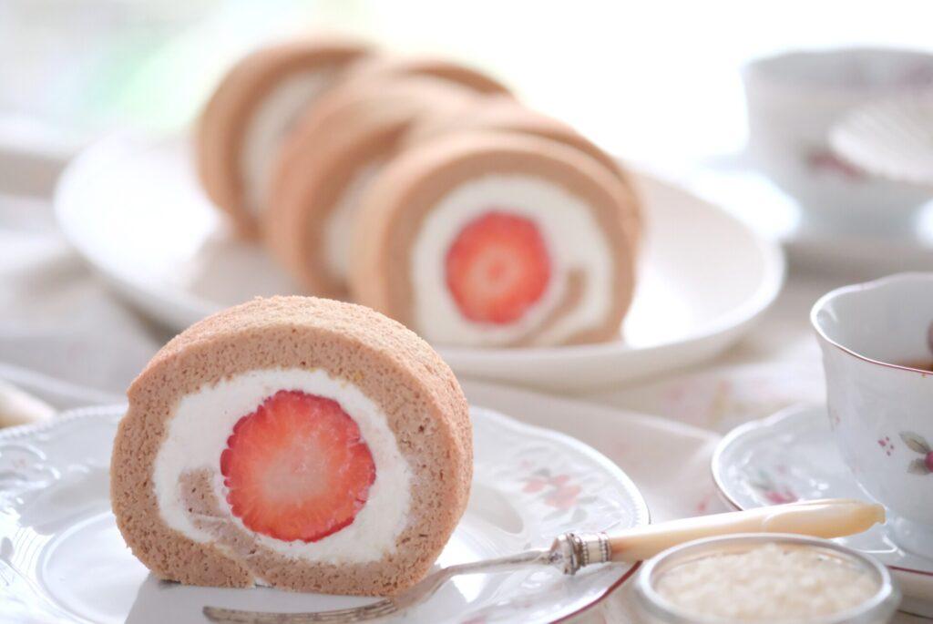 フレッシュ苺を使ったロールケーキをご紹介しますね。