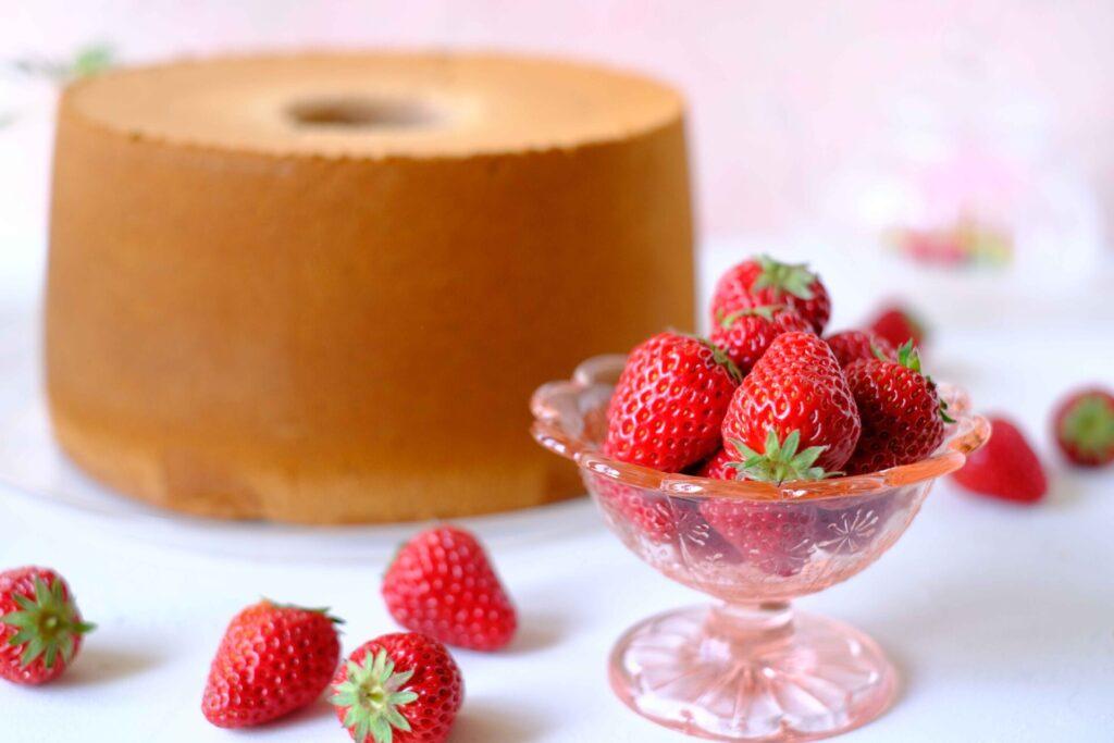 もともと、米粉シフォンケーキ開発時、春メニューの一番初めに挑んだのが、生のイチゴを使ったシフォンケーキでした。