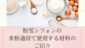 以上が粉雪シフォンで使用する主要な道具の一覧です。必ず同じものを揃えていただきたいものは、以下の三つです。