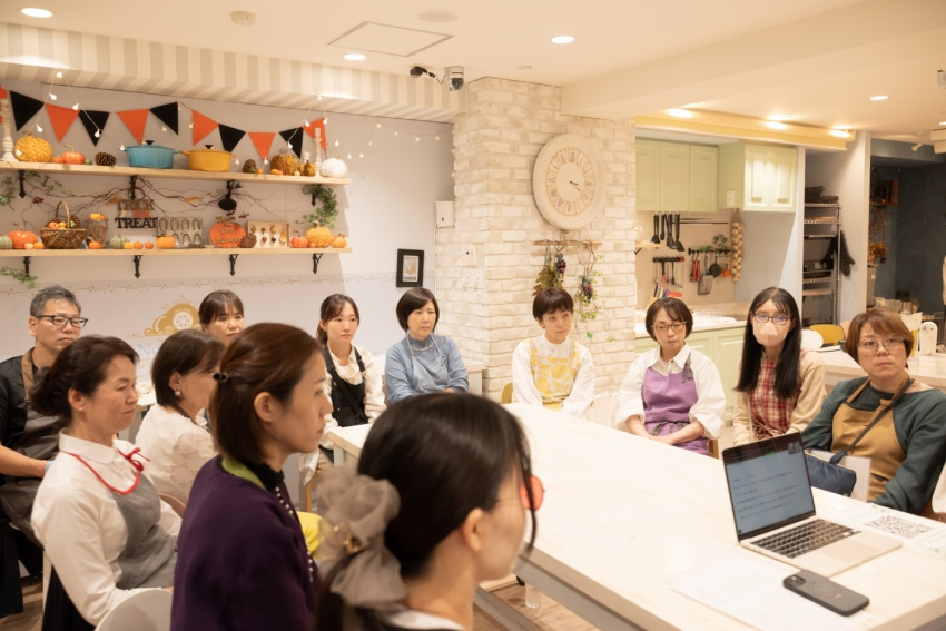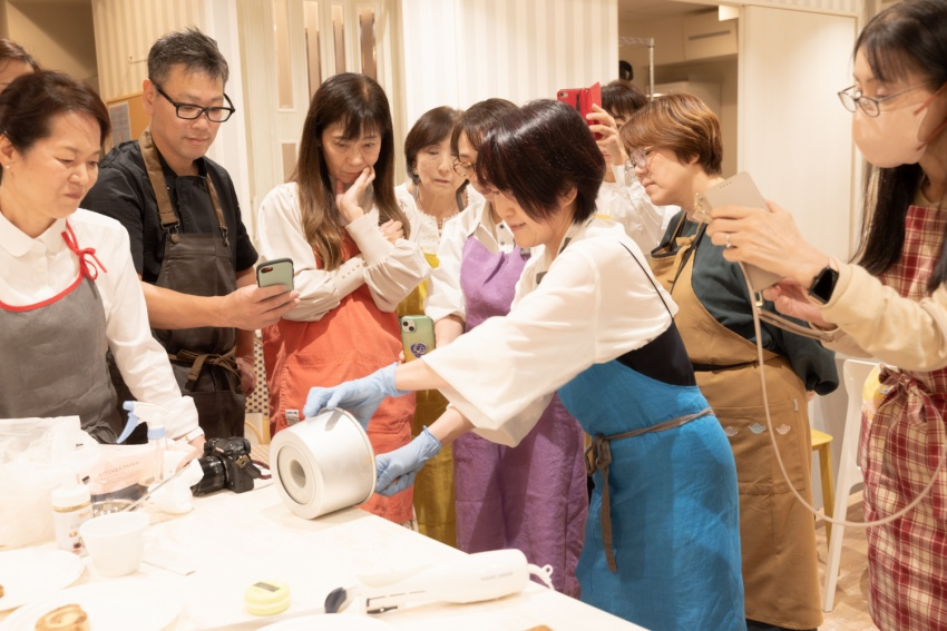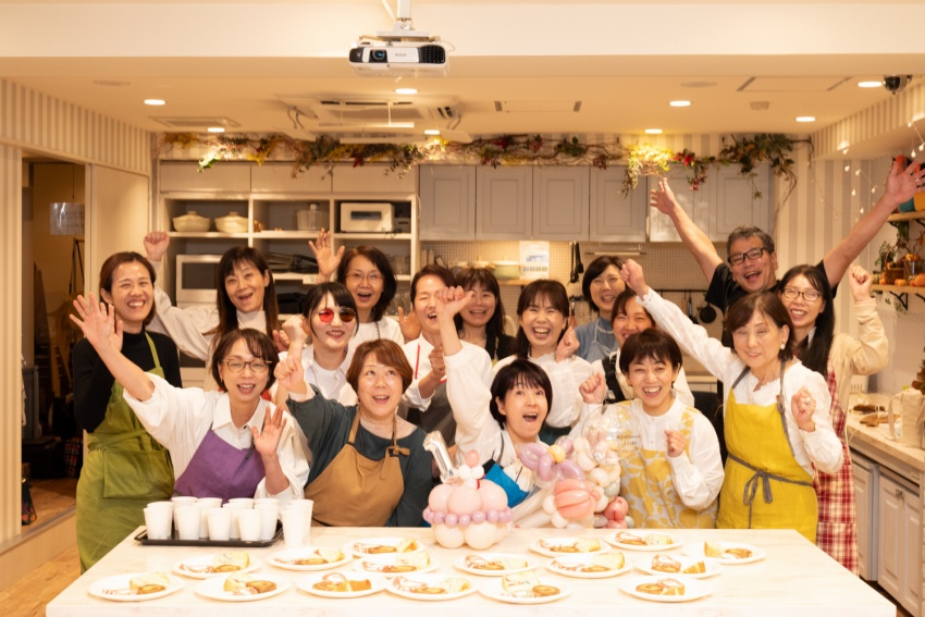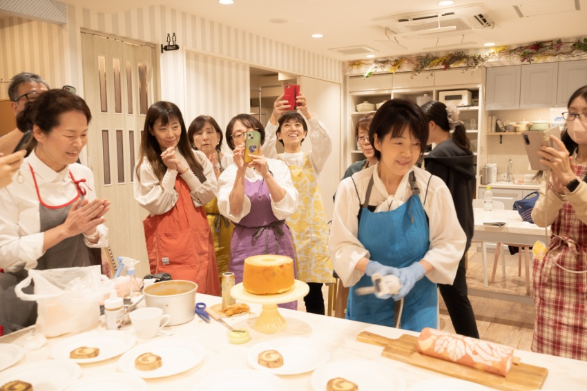 さらにその後、みんなで粉雪シフォンの独特な混ぜ方「桃太郎さん」を歌って一体感も!同じシフォンを学ぶ者にしか伝わらない空気感を感じるひと時でした。